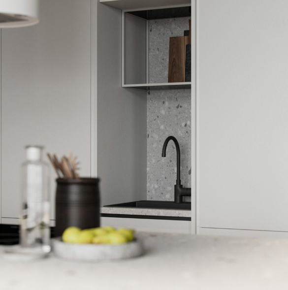 요즘 테라조는 욕식과 주방 인테리어에 트렌디하게 많이 사용되는 마감재 중 하나로 테라조 패턴의 타일, 벽지, 판넬등 다양하게 응용되고 있습니다.